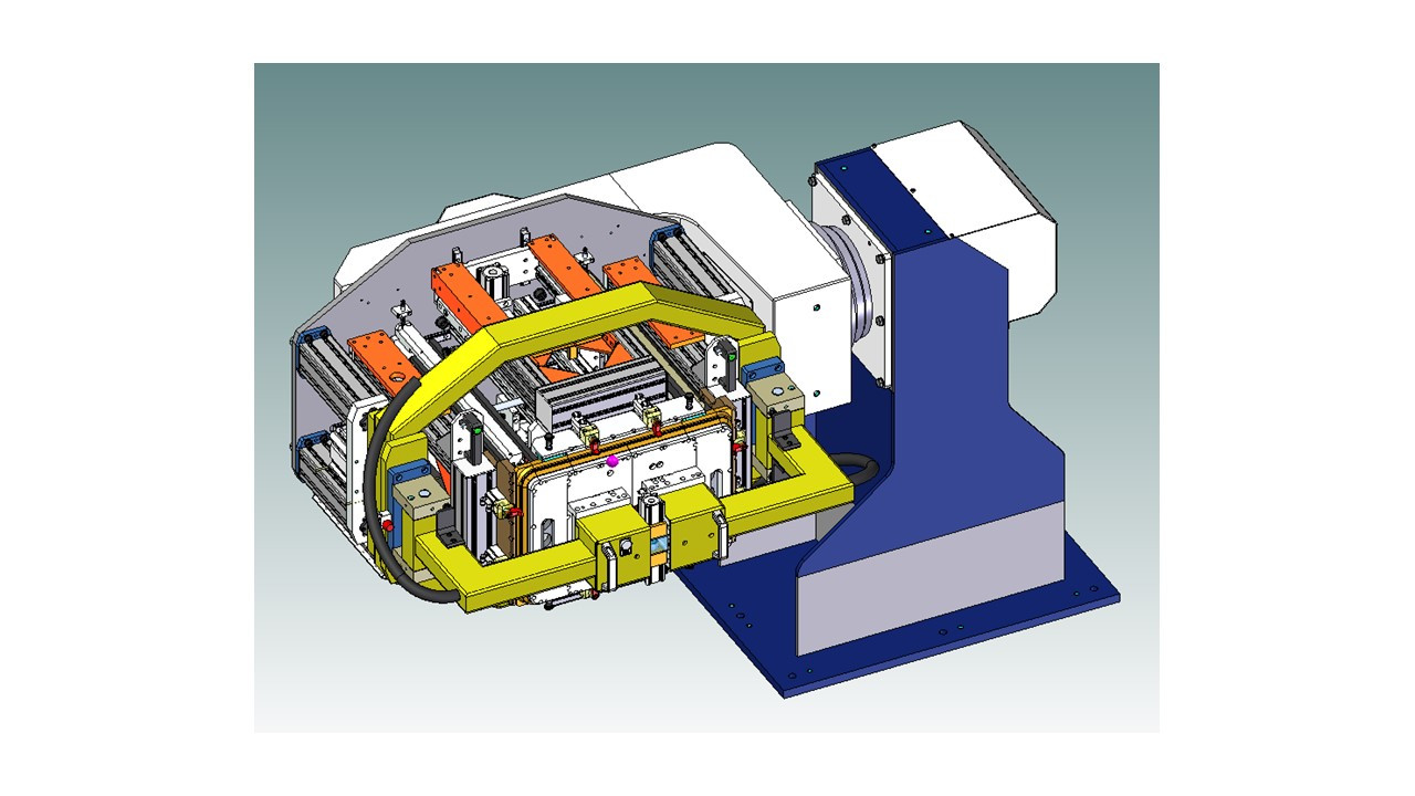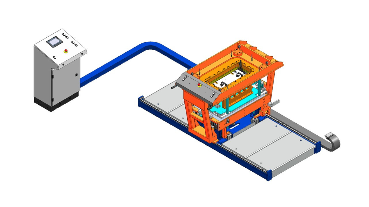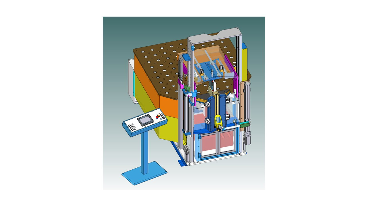 The machine is designed to precisely clamp the basin and countertop elements, ensuring ideal operating conditions for robotic welding.